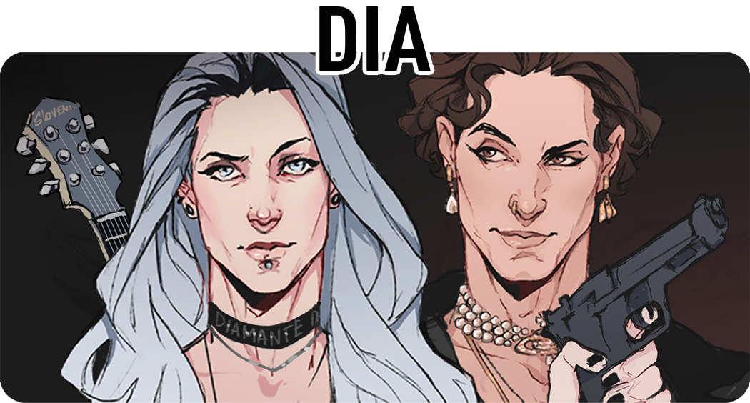 | Main characters: DIA (NA, singer), David Valente (italian, singer) | Self-published books: "Book 1: DIA", "Book 2: David", "Book 3: DIA x David" (all illustrated) |
